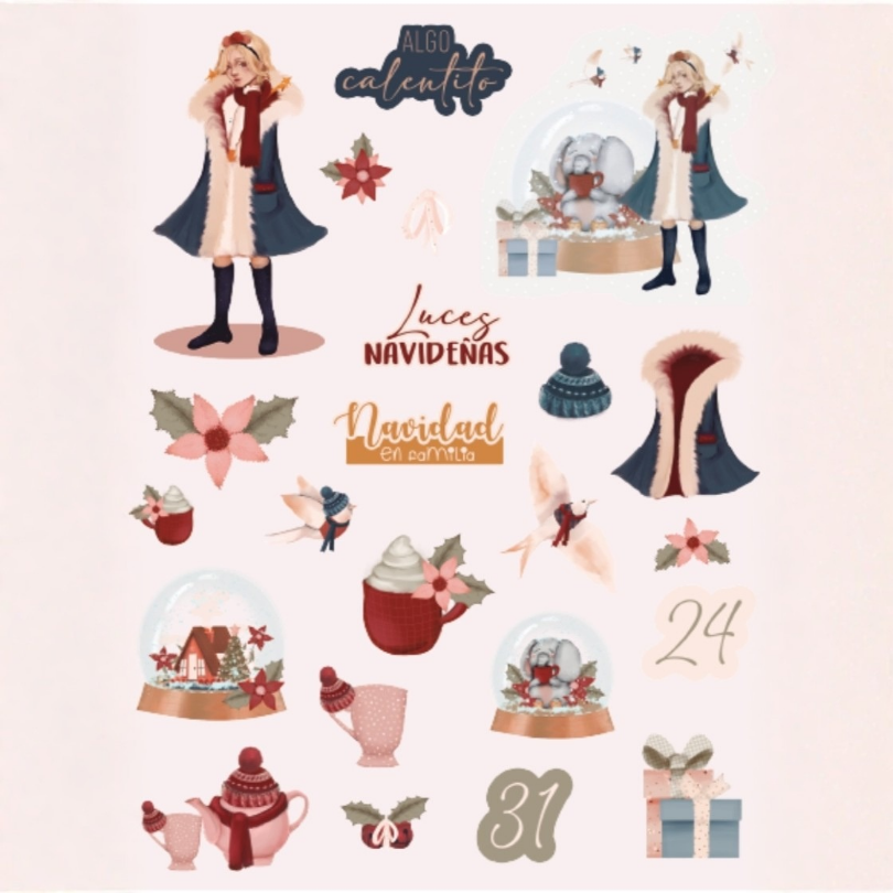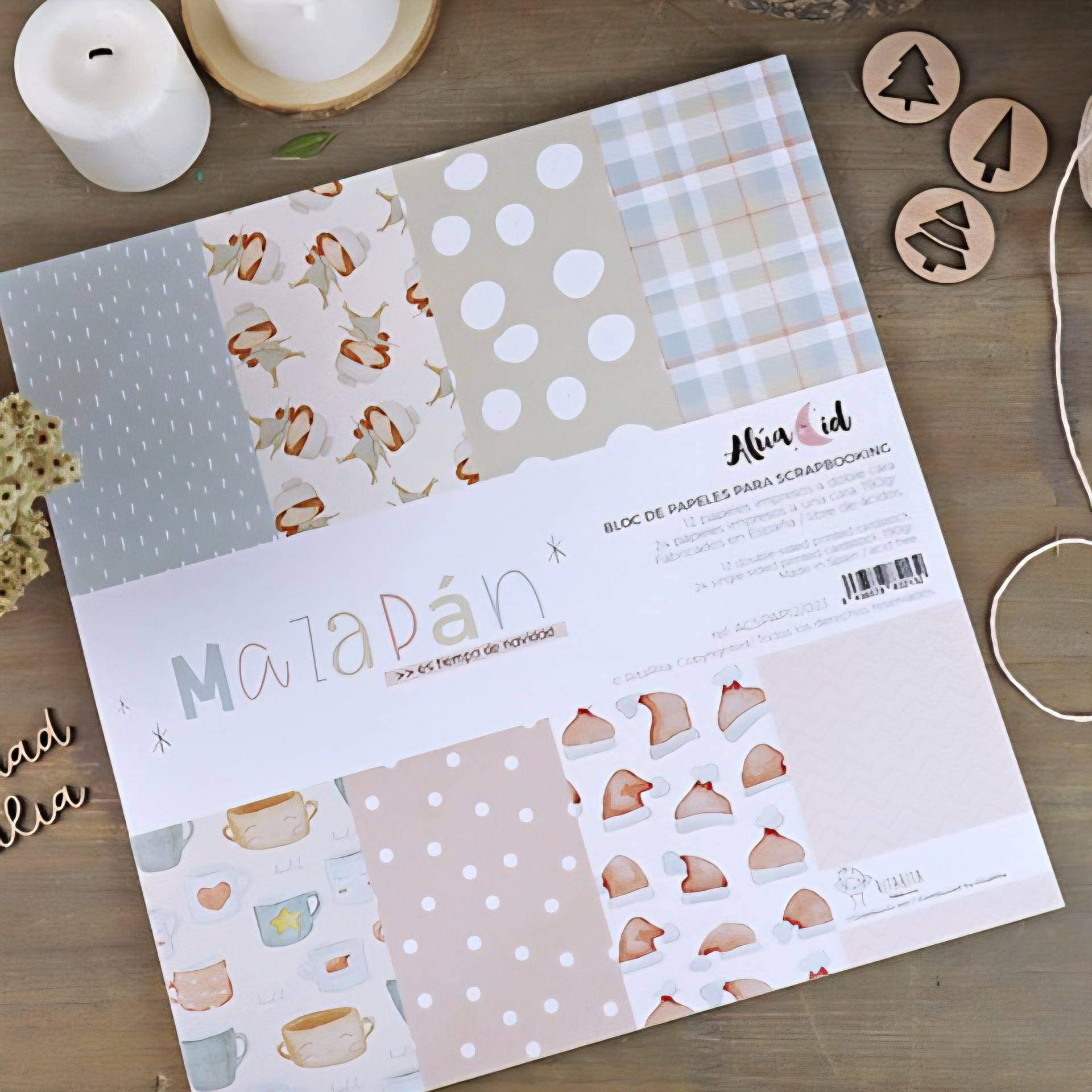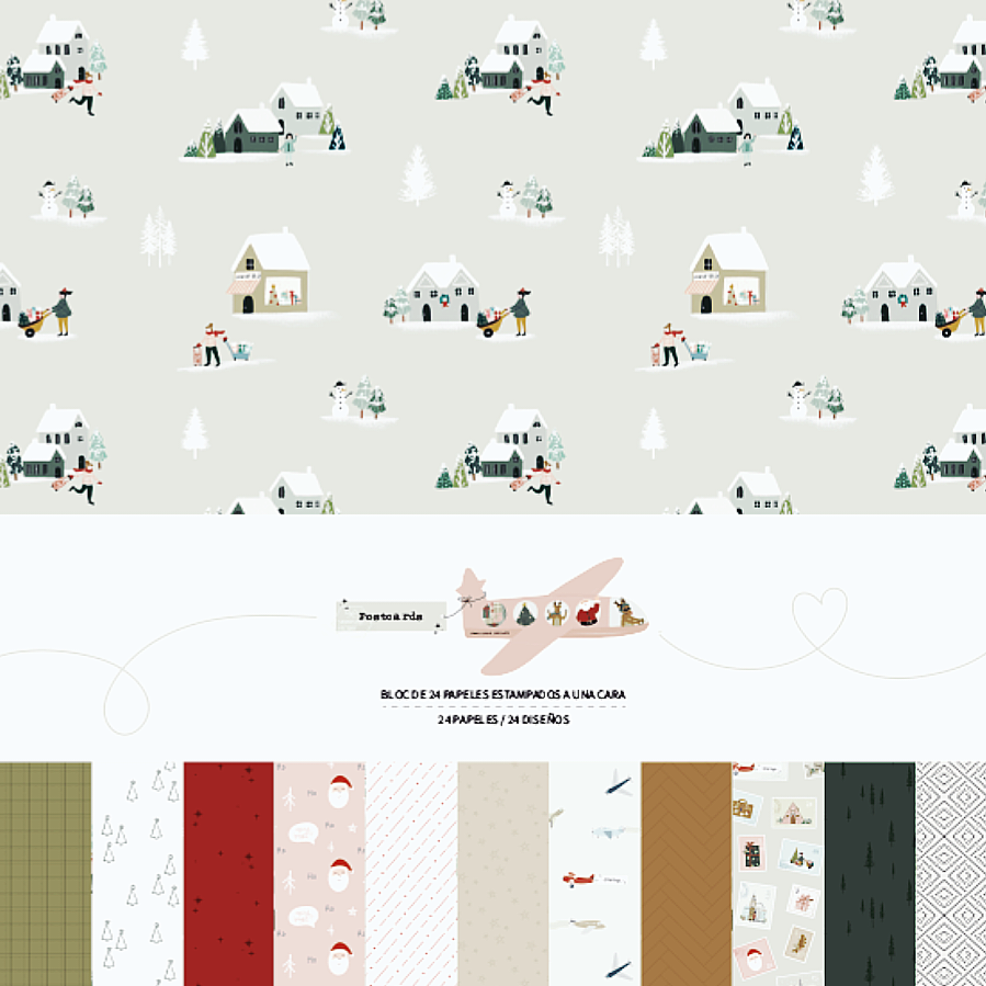 Padrões suaves, tons pastel e uma doçura perfeita para os teus álbuns e diários de Natal.